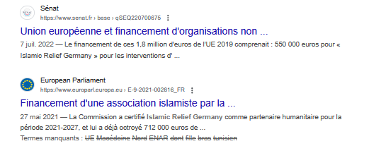 " On finance Islamic Relief Germany, du forum islamique de la jeunesse de Macédoine du Nord ou de l'ENAR qui avait à sa direction la fille du fondateur du bras tunisien des Frères musulmans. "