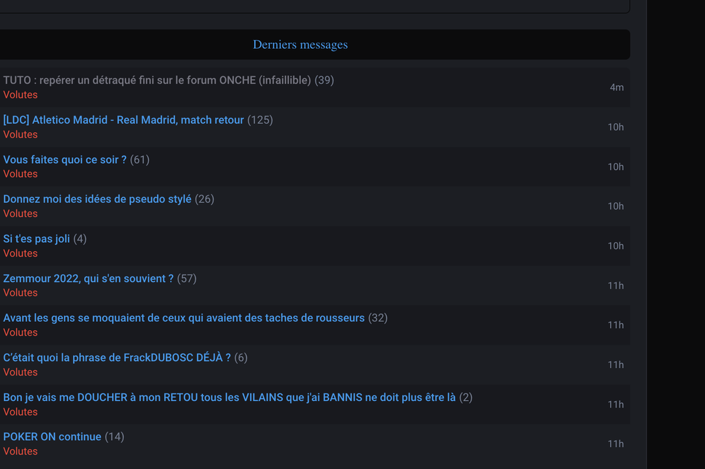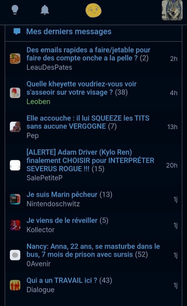 Aucun doute là dessus, je crée grososo-modo un seul topic par mois où je dis que j'ai terminé de bosser à 11h30 et que j'entre chez moi.