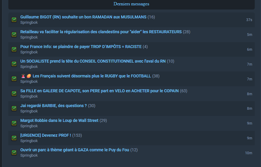 Il y a plein de logiciels venant de JVC qui permettent de répondre aux topics avec les mêmes réponses et tu peux créer des topics et boucler