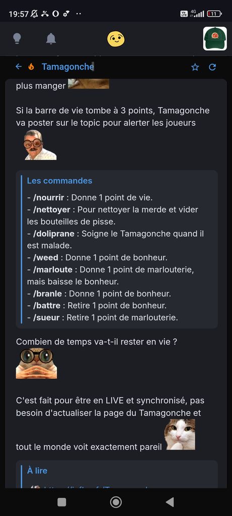 Méfiez-vous aussi de @Chocorat qui se présente comme un défenseur du Tamagonche en MP alors qu'il n'arrête pas de le faire suer du cul !