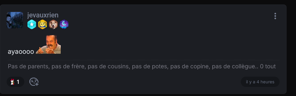 Un seul et unique message en réaction à ce qu'a dit un autre khey, je parle même pas de toi