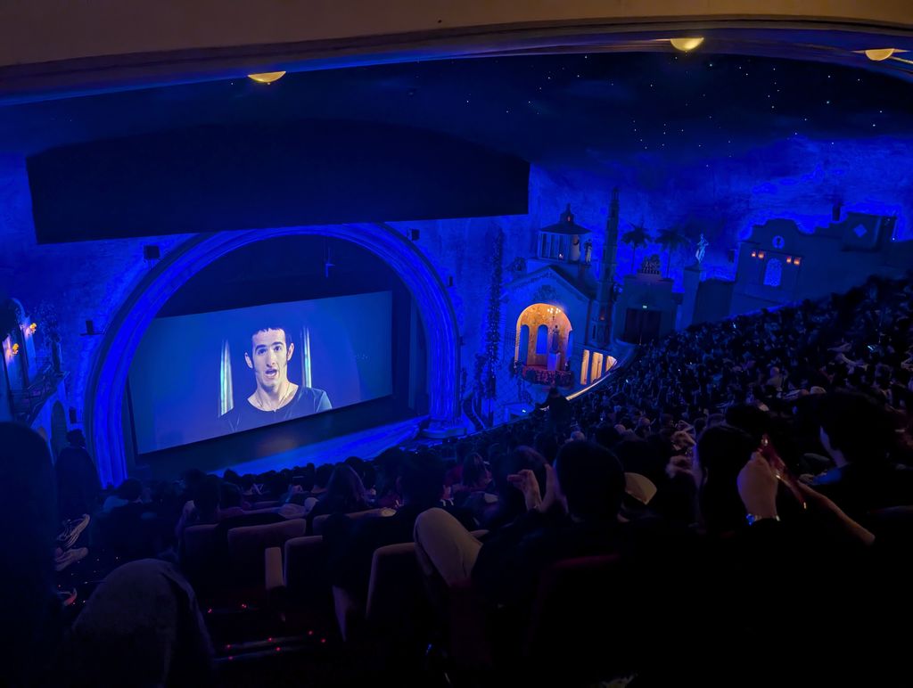 L'écran que tu vois n'est pas celui sur lequel le film est projeté, ya un écran plus grand qui descend après