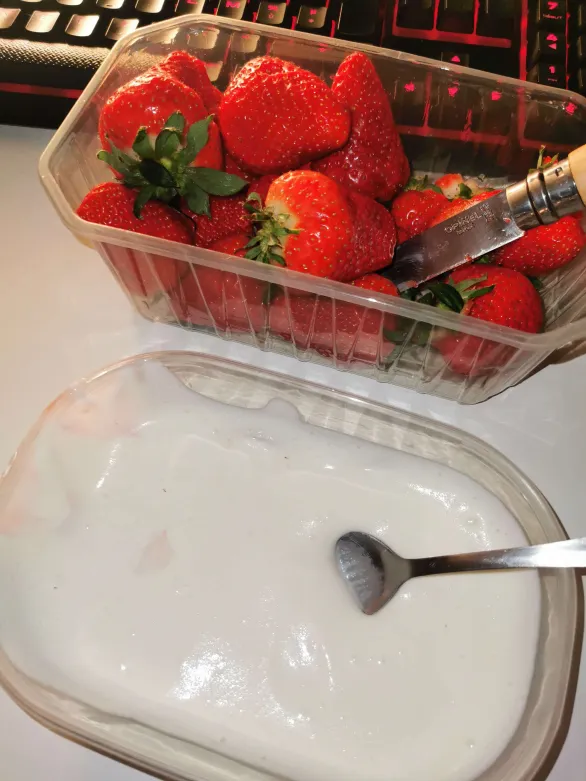 Normalement je fais pas de fraises à cette saison, les prix sont indécents, ca pousse sous serre chaufées à l'électricité et/ou gaz et c'est pas top niveau goût et tenue, mais tous mes collègues ont commencé depuis 2 3 semaines et je vais finir par passer pour un con à force de "gneu gneu pas de fraises en hiver"