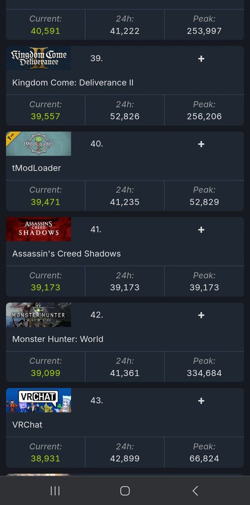 15h , tout juste 75 joueurs de plus que mh world , sortit en 2018 et dont la suite est sortie il y a 10jours (+300k joueurs actuellement)