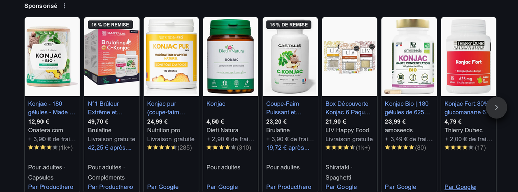Mon père s'achète des pâtes à base de konjac. Je connaissais pas du tout aujourd'hui mais ça a l'air d'être un cheat code, hormis le faire que si t'en mange trop t'as des carences, vu qu'il n'y a strictement rien dedans