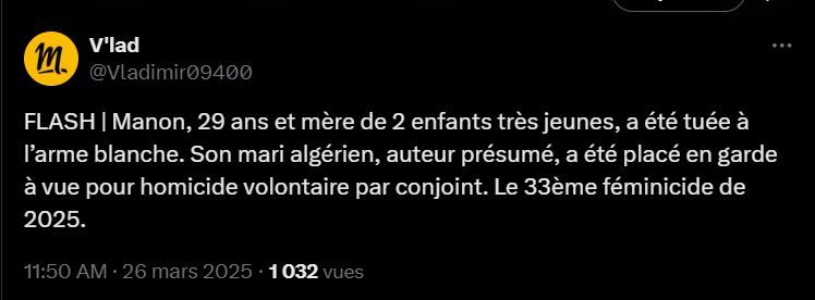 Par contre direct ça dit "féminicide".
