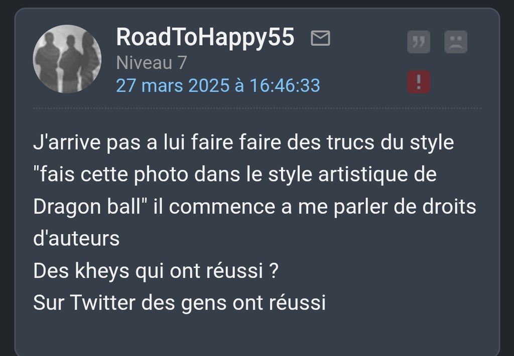 J avais beau le menacer de retourner chez Stable Diffusion tout ce que cet enculé trouvait à me dire c'est qu'il pouvait m'aider à m'en servir. On rêve