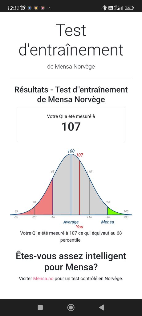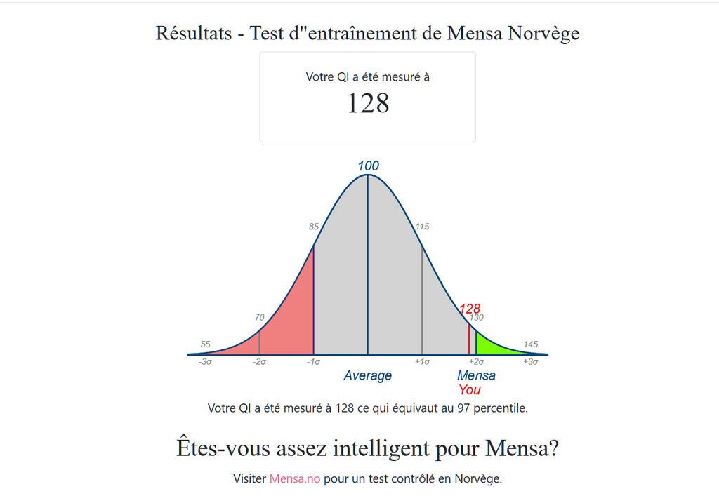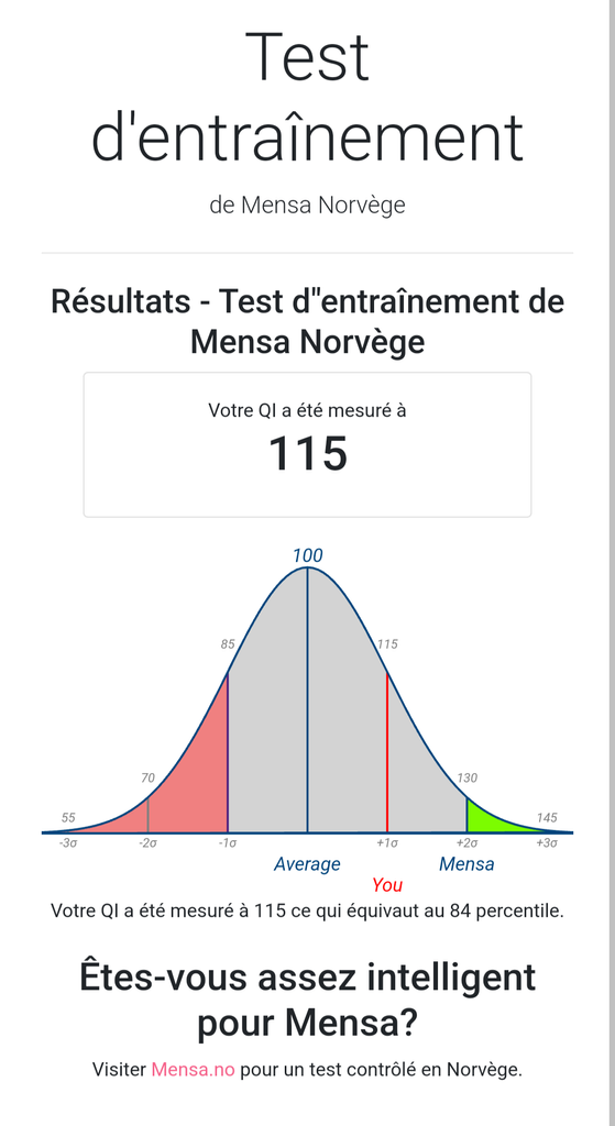 J'avais eu 126 il y a quelques mois quand je l'avais fait, je deviens vraiment débile avec l'âge et les abus