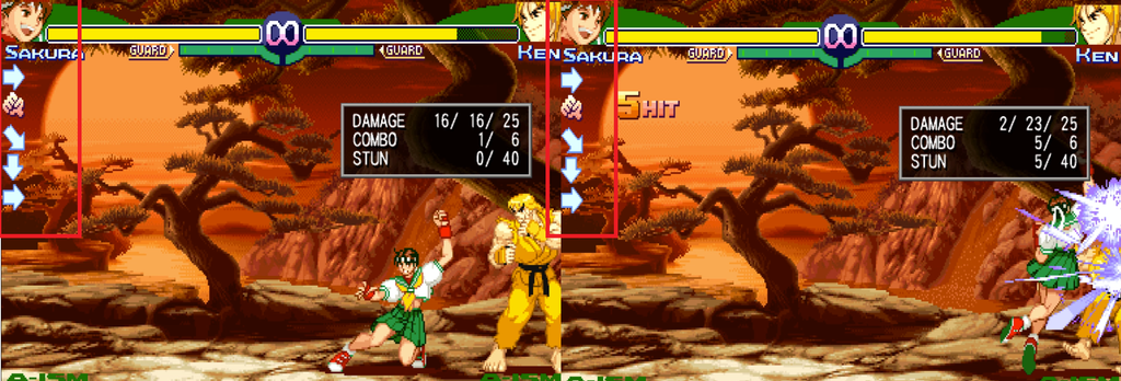 Je galère sacrément à sortir la manip des shoryuken de SFA3 de manière constante. Comme j'en avais marre, j'ai sorti le logiciel de montage pour analyser le ralenti en détail entre deux manipulations qui me semblaient identiques mais l'une était passée et l'autre non.