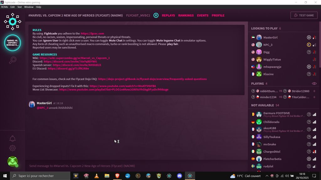 Si vous êtes intéressés, faites-vous connaître ici avec votre pseudo Fightcade et les jeux que vous voulez pratiquer.
