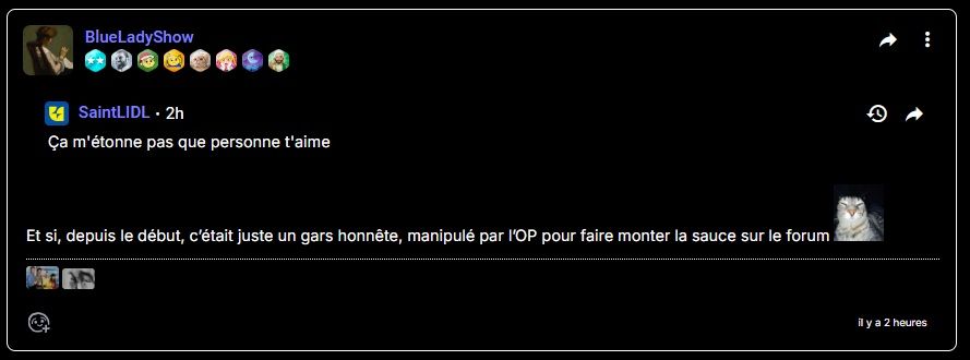 Et si, depuis le début, c’était juste un gars honnête, manipulé par l’OP pour faire monter la sauce sur le forum