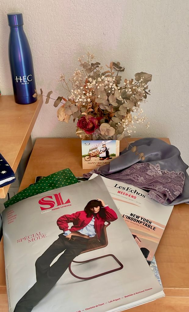 La mode le satin New York et un bouquet de rose séchées