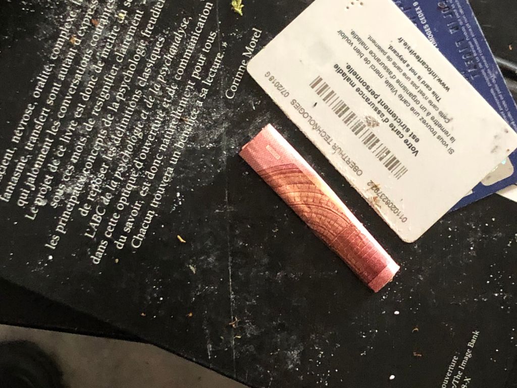 Le rail de coke sur un vieux livre de psycho ce cliché