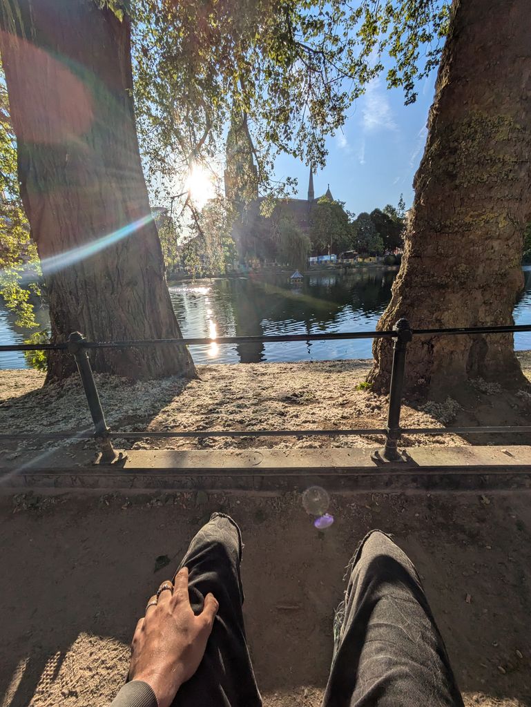 Non ma coloc est juste à côté d'un super banc donc je profite du soleil