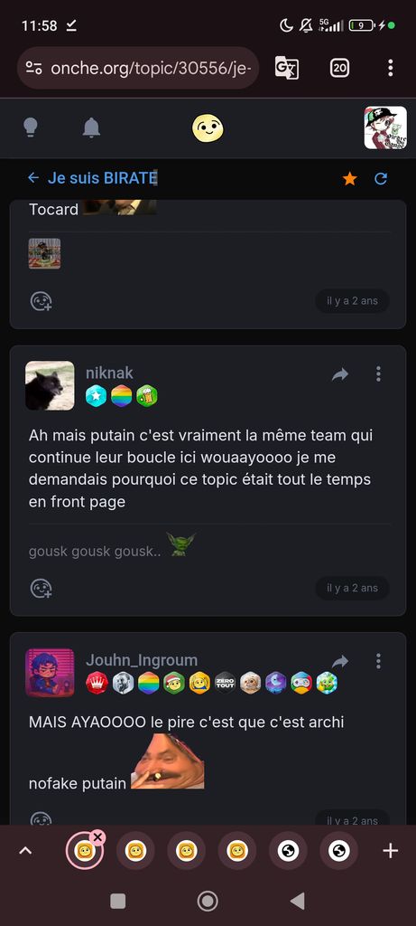 Ok j'en suis au moment où le reste du blabla arrive sur onche après 3 pages d'insultes contre Oib avec Jouhn
