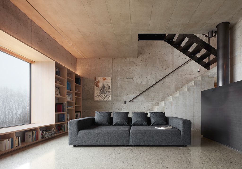 Les fenêtres panoramiques qui déshabillent plus qu'elles ne cadrent, les petites lucarnes dysharmoniques, la passerelle de chantier industriel, les proportions pesantes, la composition volumétrique sans articulation avec le terrain, la rigidité orthogonale, la pauvreté d'invention, l'austérité du béton nu, pas de jeu, aucune porosité, générosité ni chaleur, je trouve ça si nul