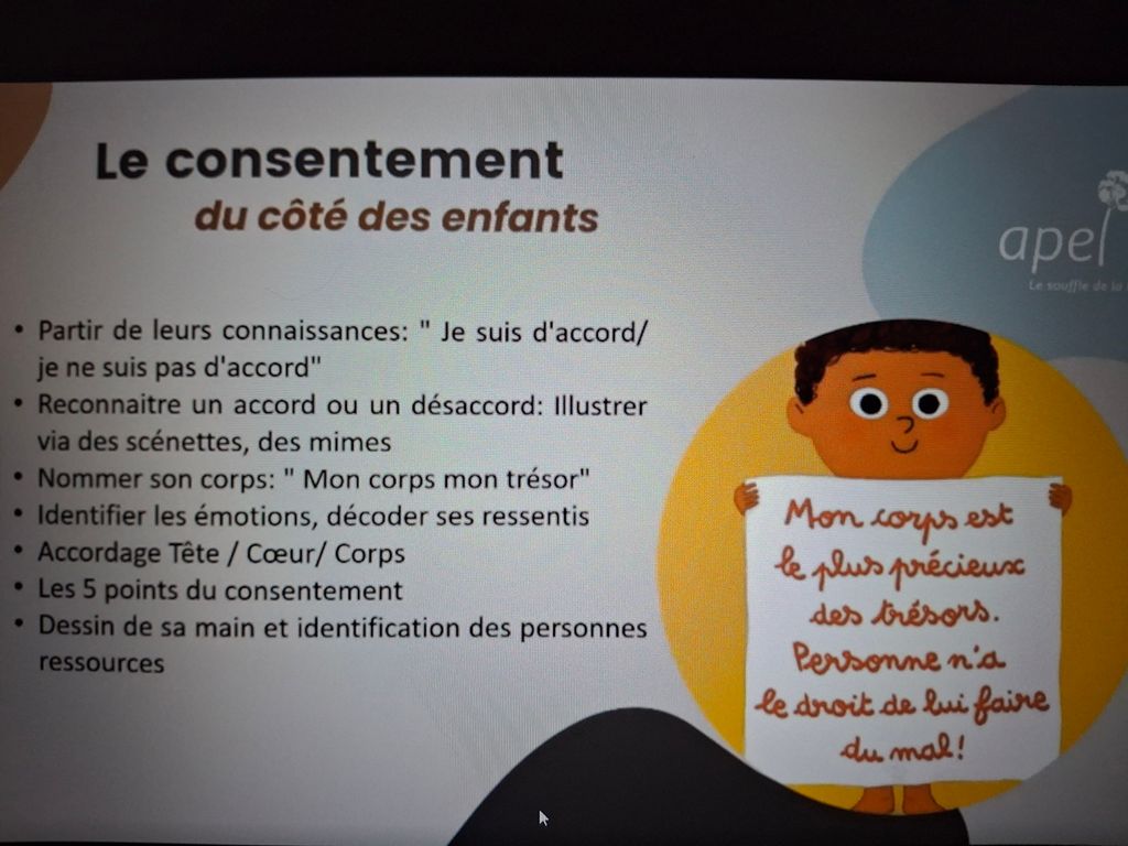 Dans l'ensemble ils ont été plutôt rassurant.. Ça par exemple c'est pour le consentement en maternelle