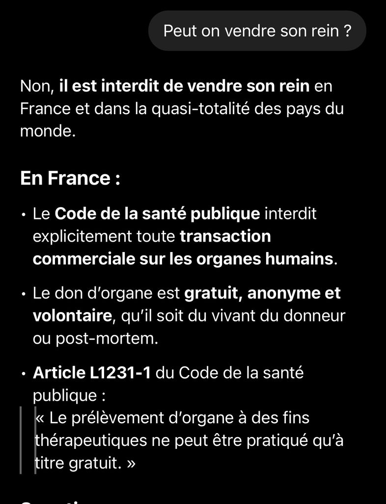 Du coup le rein d’un homme français de 30ans actif avec une bonne hygiène de vie qui a jamais trop deconné je peux le revendre combien ?