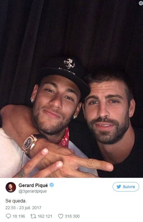@ElBouclador Alors en fait c'était un POST de Gérard piqué juste avant que neymar parte à Paris. Il y avait juste des rumeurs de son départ à l'époque et en gros Piqué a posté cette photo en marquant "il reste." en mode ça y est c'était acté