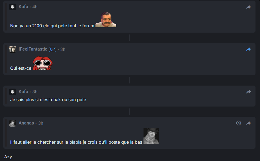 Non en vrai je suis pas si ouf que ça mais y'a très peu de gens ici
