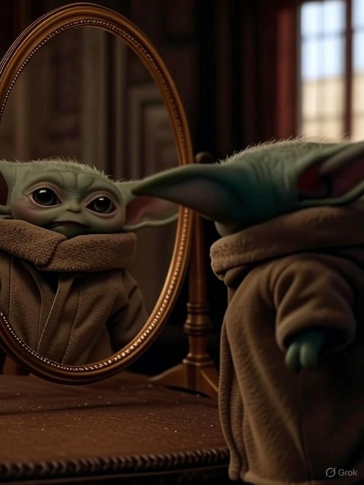 bratz qui regarde dans le miroir et y voit un xenomorphe