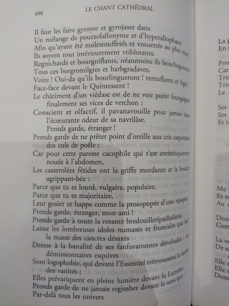 y'a le chant cathédral du génial Caron dans ma librairie j'ai pris quelques pages au hasard c'est tout entier comme l'extrait du site des BL @sisyphe @nozomu