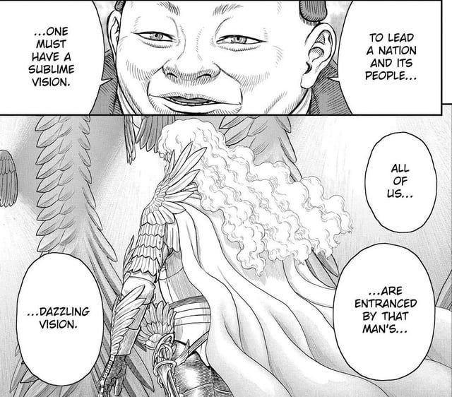 moi j'aime bien qu'on puisse quand même voir que malgré son égoïsme (grâce à son égoïsme) Griffith parvient à gouverner un royaume qui est réellement une source de joie et d'espérance pour ses sujets, si on ouvre un orphelinat pour être loué, on n'en a pas moins fait un bien réel et digne de louange