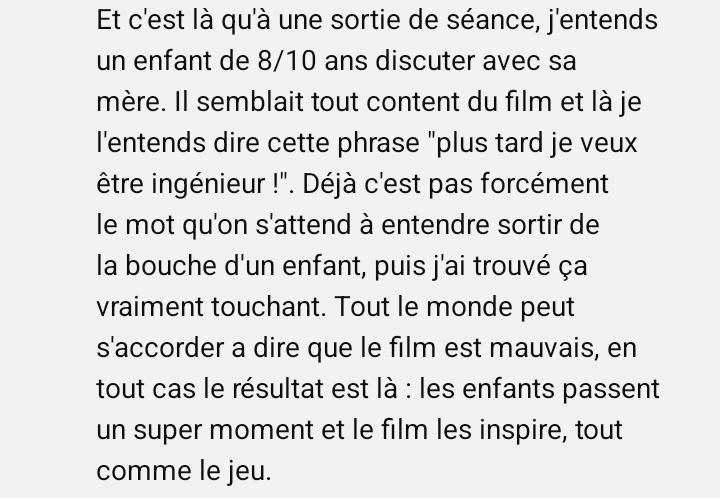 "Le film est applaudi en pleine séance... Un gosse veux devenir ingénieur après avoir vu le film "