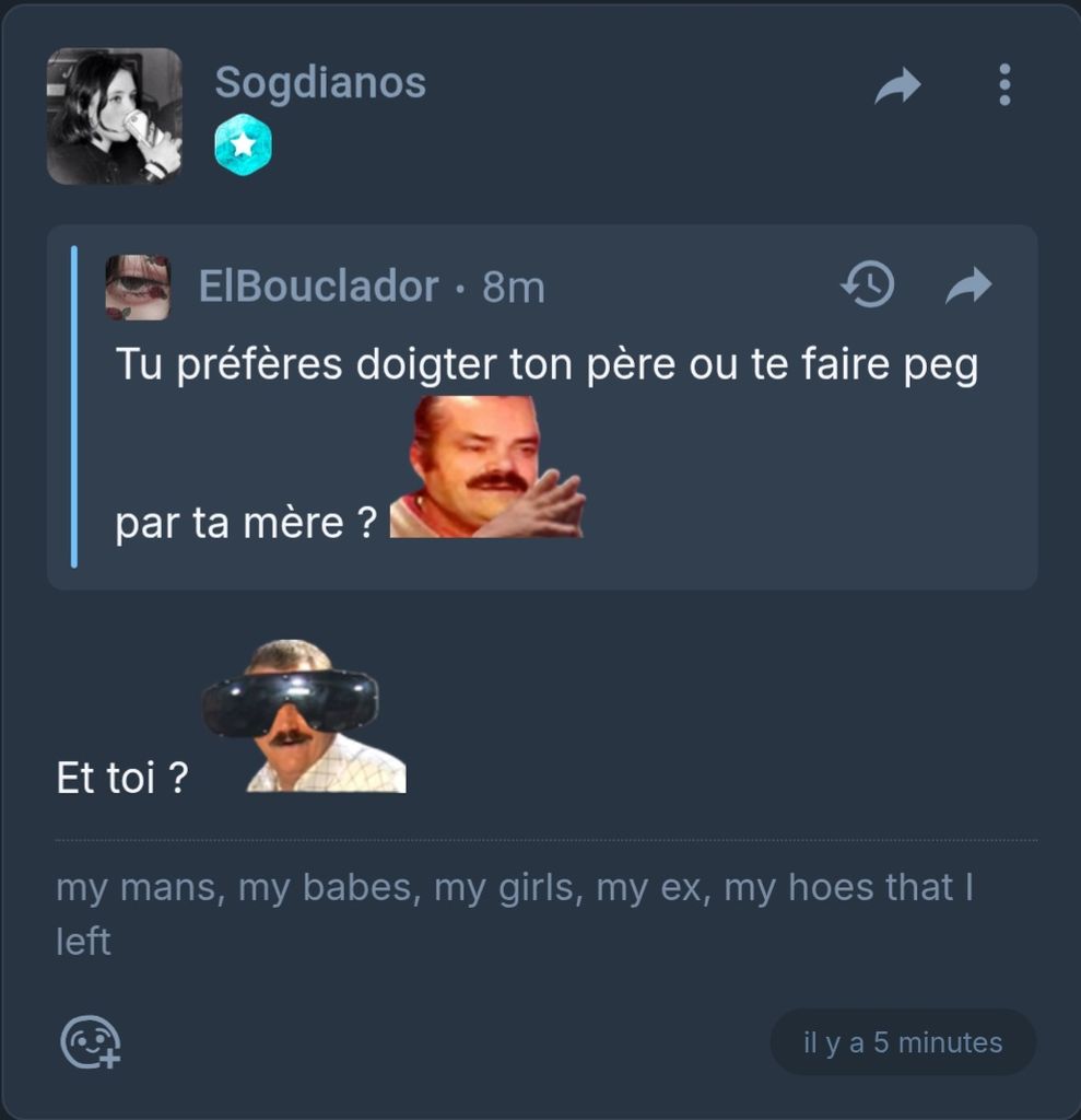 No fake hein, tout le monde m'harcèle mais moi jamais, au pire je répond mais c'est de la légitime défense