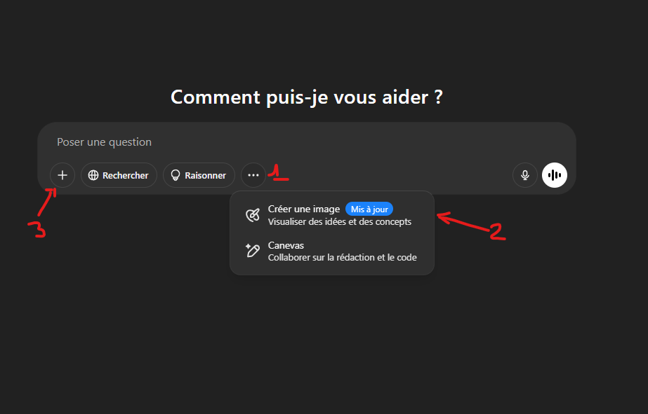il faut aller sur chatgpt.com, cliquer sur les 3 petits points dans les options de la conversation, puis créer une image, ensuite tu clique sur le +, tu importes la photo, tu copie le texte et tu fais envoyer