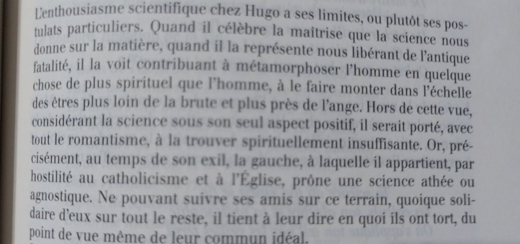 j'irais pas jusqu'à dire que ça a été un topos même s'il revient par endroits, chez Hugo c'est même au contact du positivisme agnostique qu'il questionne la valeur de la science