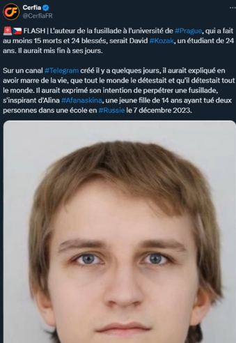 Ils n'ont pas parlé de Philippine également, 19 ans, tuée par Tara. O, sous OQTF. Le pire c'est leur tweet sur un homme de 49 ans qui est entré armé dans une mosquée :