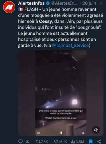 C'était à Nantes, et on a appris que le gars en question était un clandestin algérien et Cerfia a simplement supprimé leur tweet. Même le ministère de l'Intérieur a du leur demander de se calmer durant les émeutes à cause du rôle incendiaire que Cerfia jouait.