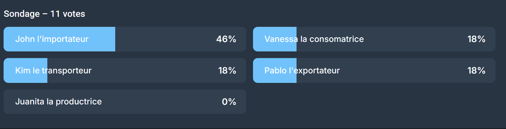 - Pressions sur les marges des importateurs (John) et exportateurs (Pablo).