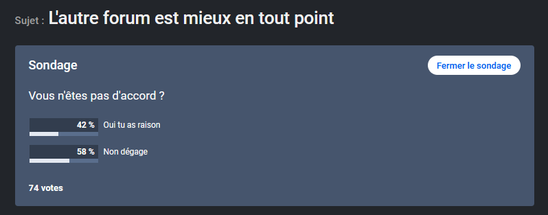 Merde je peux plus post là-bas, j'ai atteint ma limite de message vu que je suis un pauvre gueux Lvl 2