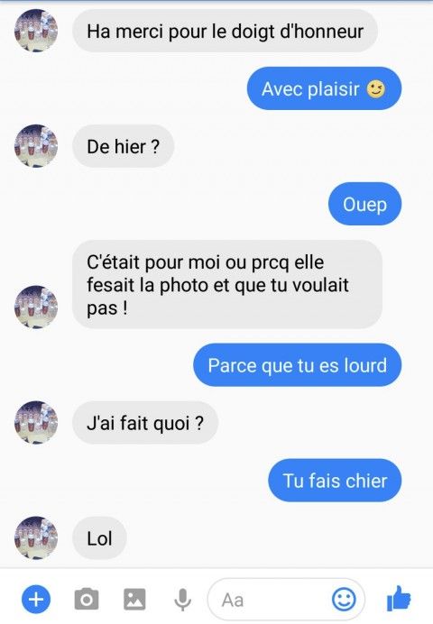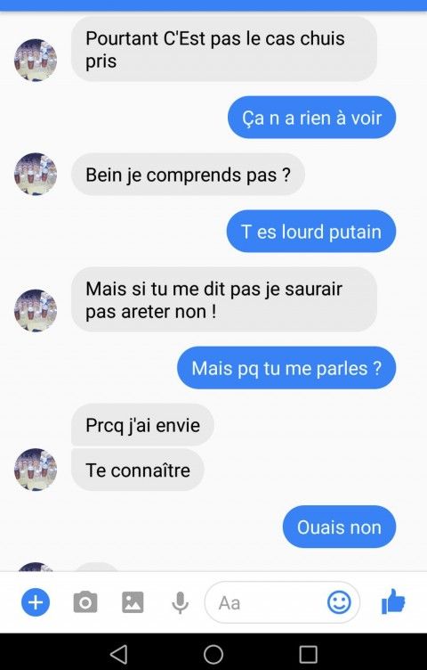 Bordel mais comment tu peux avoir aussi peu d'honneur. Après la fille pourrait aussi le bloquer, mais je suppose qu'elle préfère flatter son égo.
