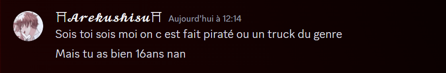 J'ai piraté un pulco sur discord, il s'avère qu'à 21 ans il RP SEKSE avec une mineure de 16 ans (elle est collège donc je crois pas que 16 ans soit son vrai âge)