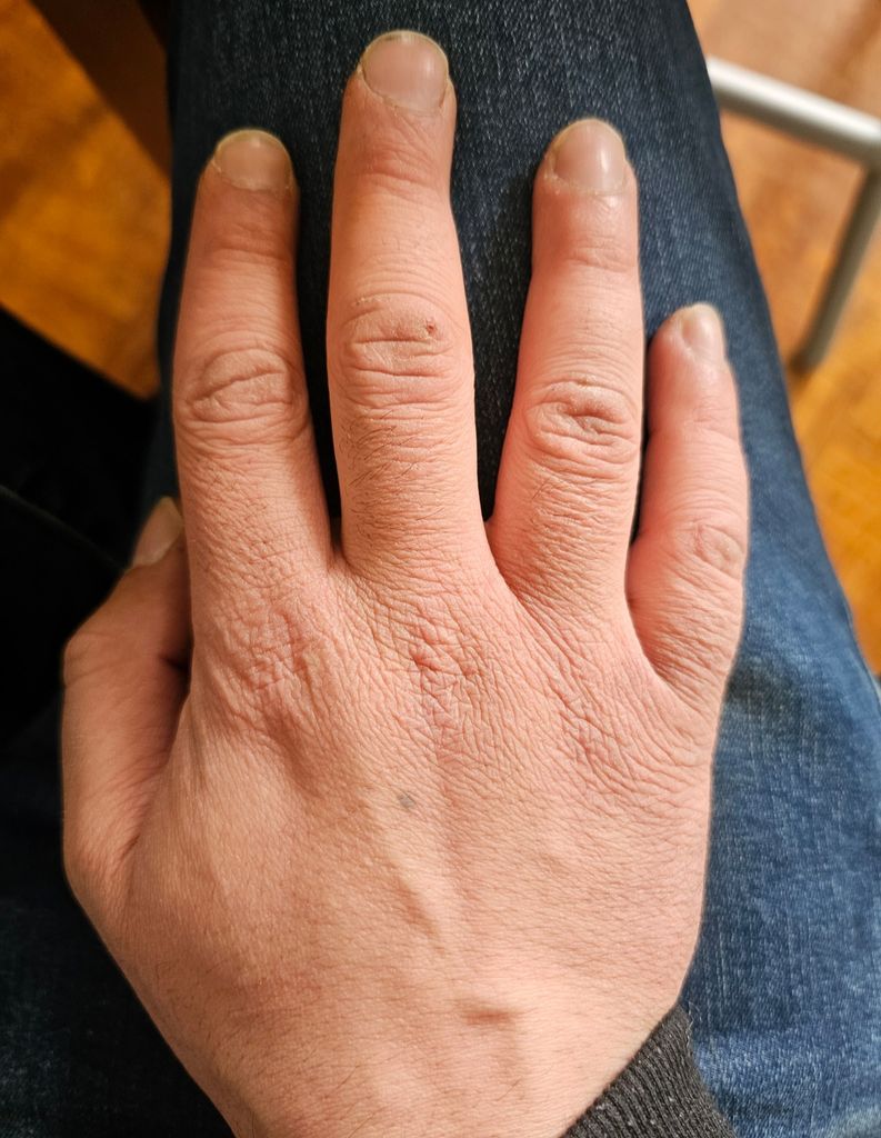On ne voit pas mais j'ai de la corne sur la paume des mains. Même si j'en avais plus avant