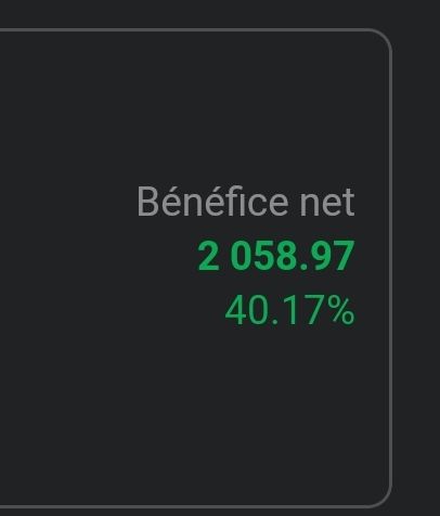 GG, a mon avis ca va encore monter ahi. Mais je me suis fais sortir avec mon stop suiveur. J'ai fais 3k5 de benef au final, je vais remettre tout all in je pense