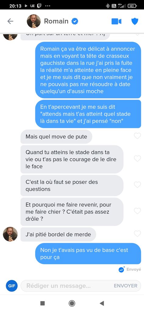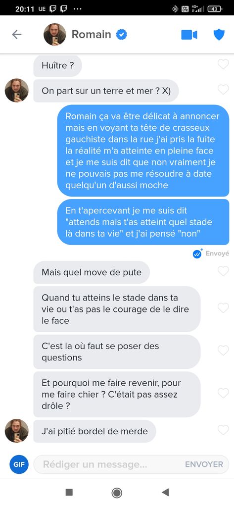 Tu aurais du plus avoir plus de tact et écrire comme une gonzesse, le message aurait été plus douloureux, or là c'est évident que c'est un canular.