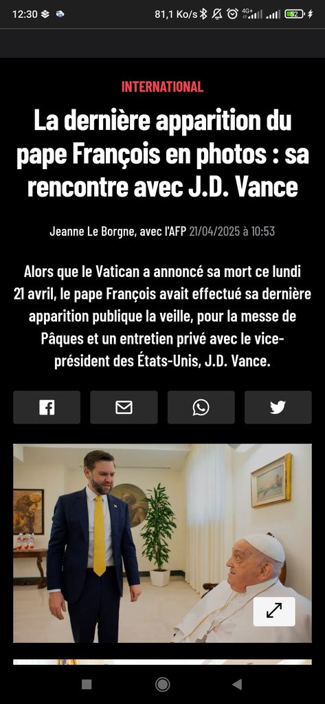 Le Saint-Père rencontre JD Vance : meurt le lendemain