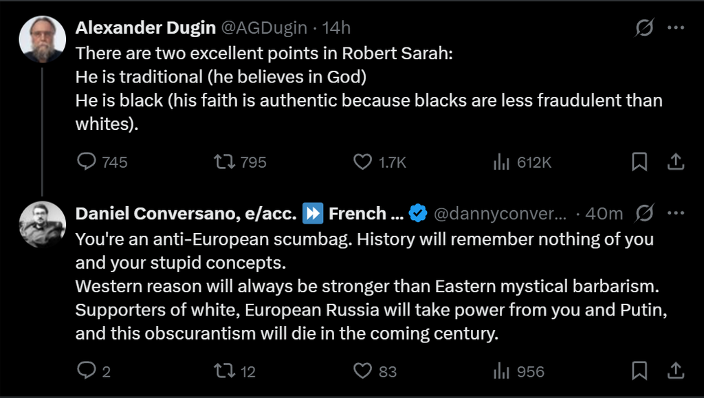 Quoi qu'il en soit, dougine, lui, n'a à mon avis pas la moindre goutte de sang juif, c'est donc à priori un traitre si tout ce qu'on peut lire à son sujet est vrai.