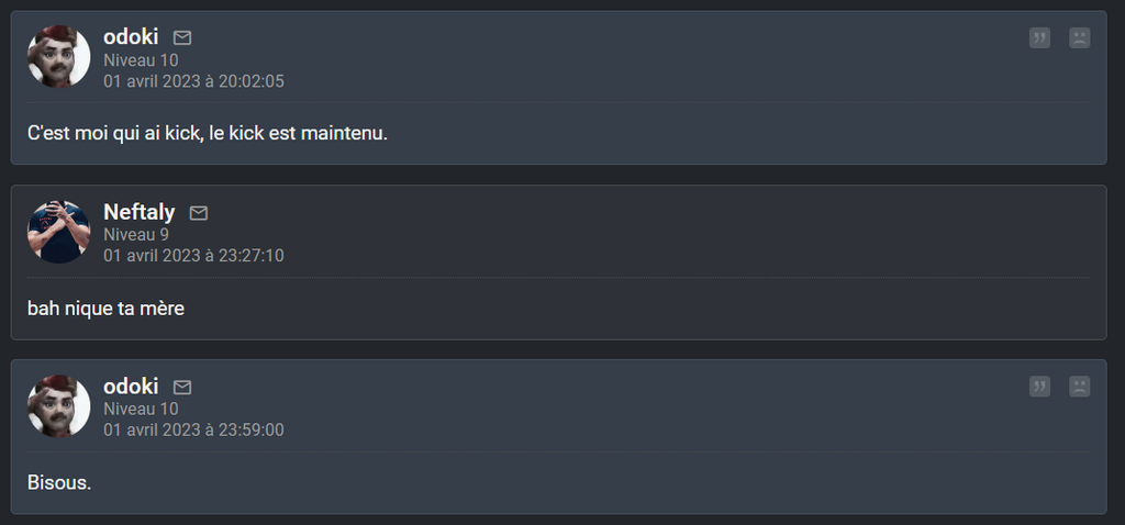 moi je connais très très bien il m'a kick pour flood alors que c'était mon premier topic depuis des semaines