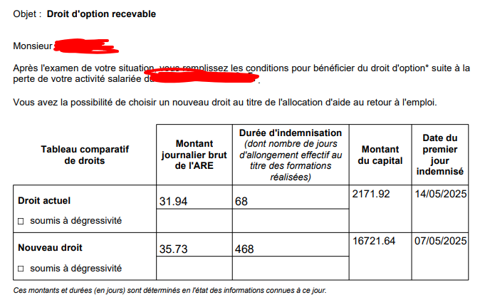 j'ai fait une demande de droit d'option, car ça faisait longtemps que je touchais la même chose avec le chômage.