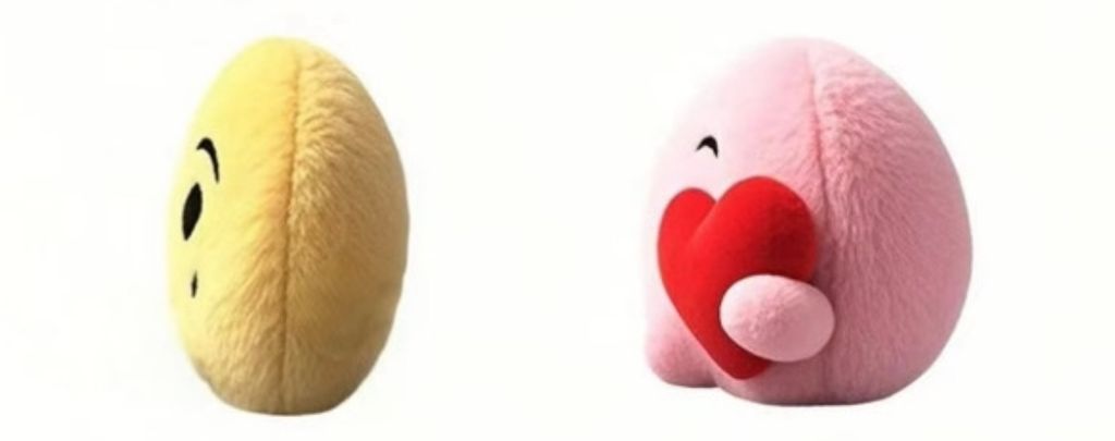 Par la suite, on a eu droit à la taille réelle avec les bonnes couleurs, mais le fait d'opter pour une version "bouboule" faisait apparaitre une petite couture à l'avant :