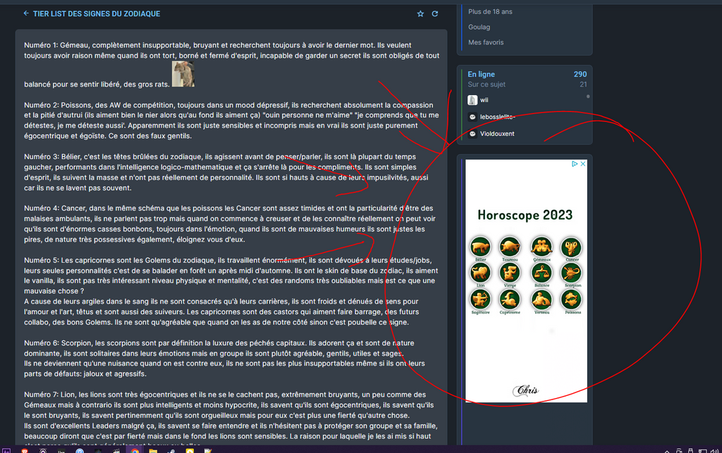 Tu le mets top 2 des signes de merde et je confirme sur la base de ce que les gens pro astrologie me disent quand je donne mon signe, c’est tout