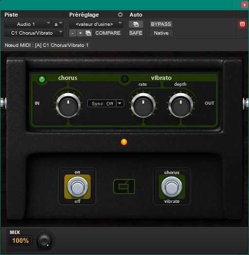 pour le mode vibrato le signal d'origine est coupée et l'on entend que le signal modulé, auquel on peut modifier la vitesse du vibrato et sa puissance.