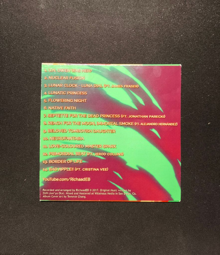 Bref pour revenir sur cet album cover de Touhou, c'est on va dire un maxi-bestof de ce que ZUN, créateur et compositeur des jeux Touhou à pu sortir. Et je trouve que RichaadEB a réussi a retranscrire ces musiques dans un style bien métal rock.