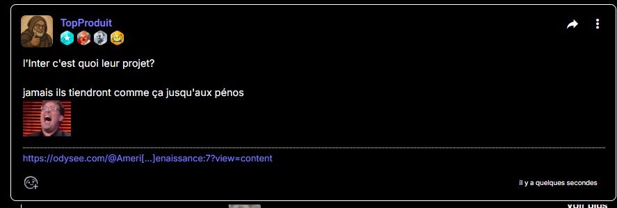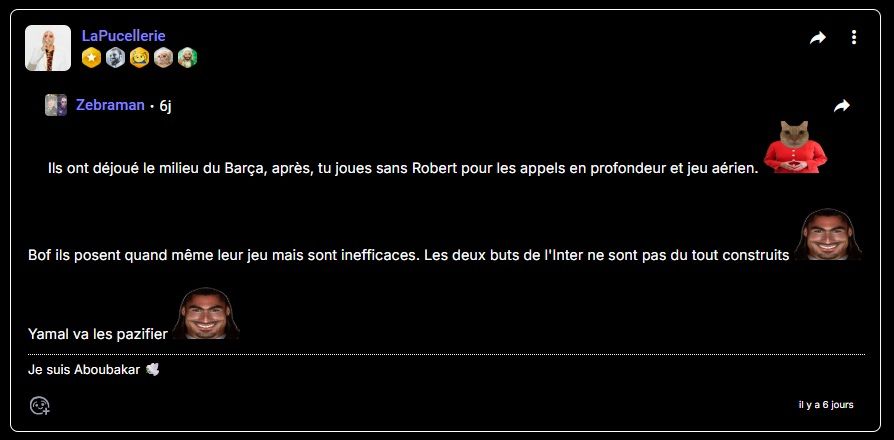 Merci pour votre participation les footix. Let's go Inter. Le milieu neutralisé, Inter, c'est pas Getafe ni Alavés et vous n'avez pas remarqué qu'à chaque fois, Henni permet de faire gagner en supportant l'équipe qui va perdre, vous pouvez tout anticiper, c'est le chat noir, just wake up. Cela fait environ plus d'un an de matchs que le mec perd en les supportant et qu'il me fait gagner cet ahuri de maghrébix.