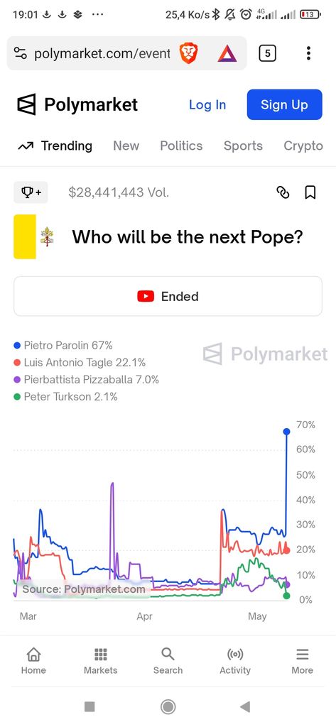 Les parieurs de Polymarket ont fait leur choix. Reste à voir si l'Esprit saint va dans le même sens qu'eux